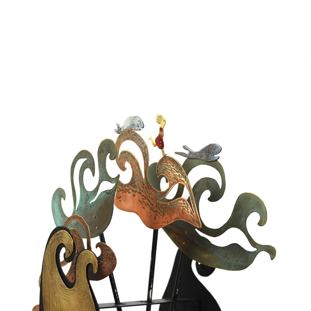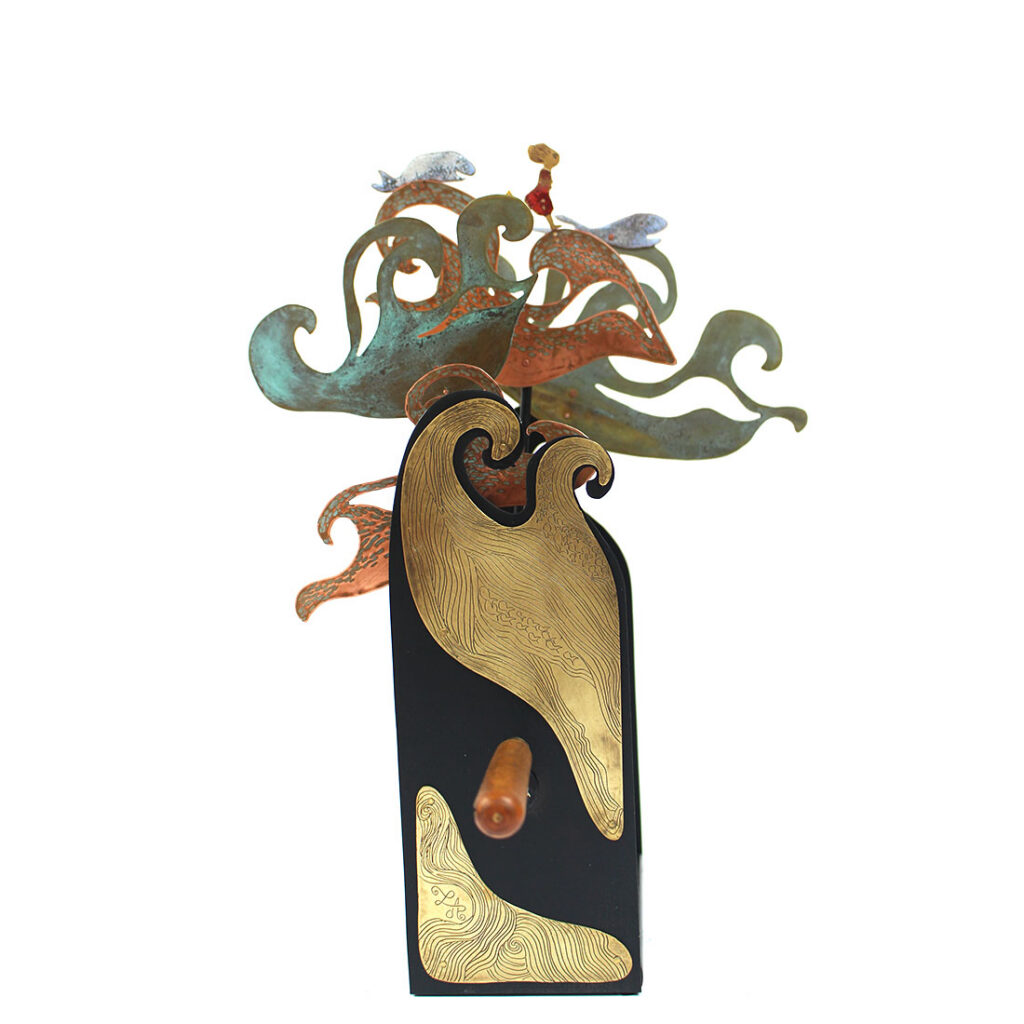 La tempête est une sculpture mécanique qui s’anime grâce à l’action d’une petite manivelle, placée à l’avant de la sculpture.